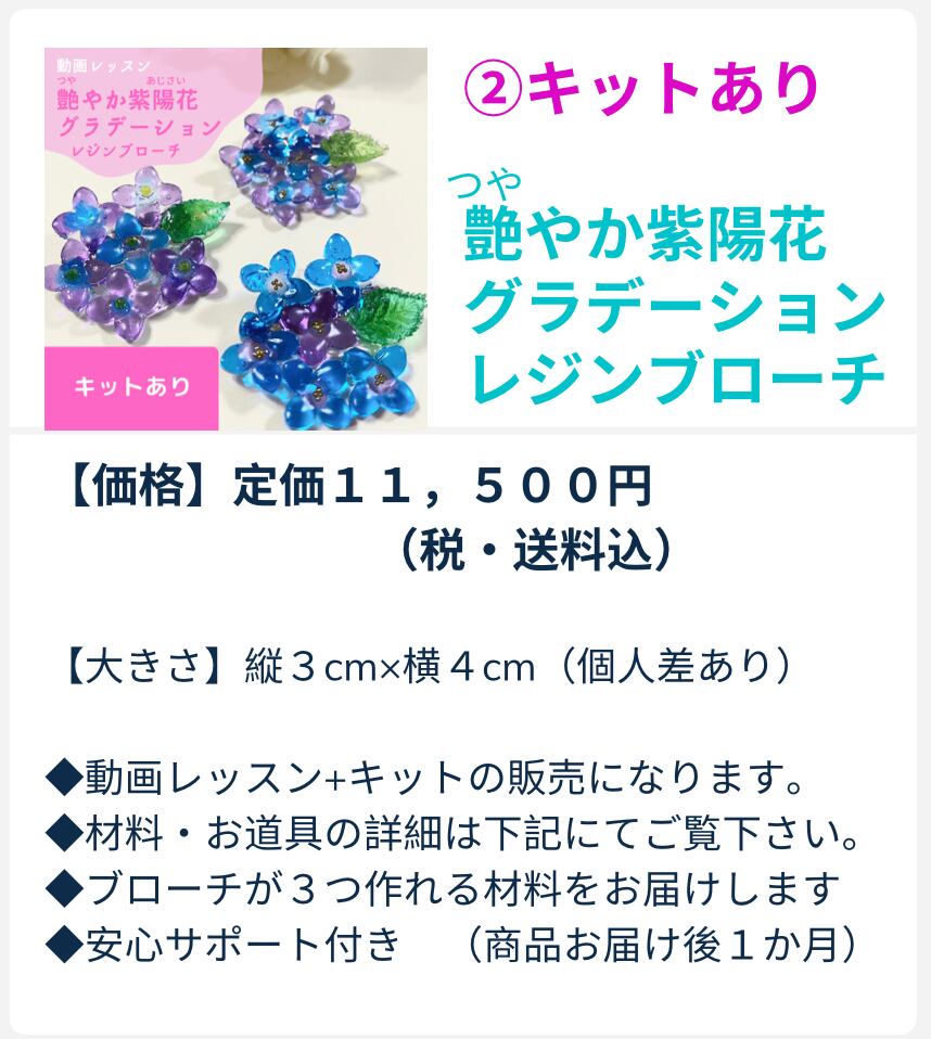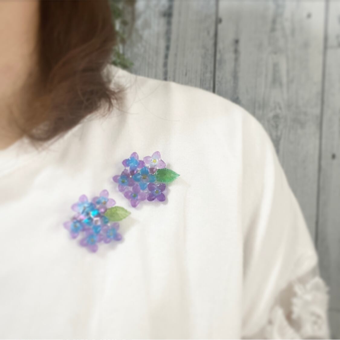 紫陽花レジンブローチ/キット付き動画レッスン/送料込み